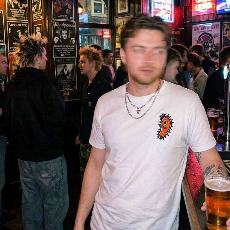 Born from the haze of the early 2000s underground and the timeless ritual of the local British boozer, we are a brand built on community, banter, and a healthy dose of rebellion. We draw inspiration from scratched CDs, worn-in leather booths, and the days when a night out meant leaving your digital life at the door. Itโs gritty, itโs loud, and itโs unapologetically ours.